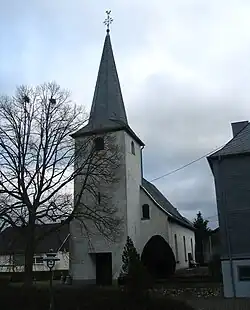 - Evangelical church, Hauptstraße 25A – aisleless church, about 1700, conversion marked 1799, Romanesque west tower, raised about 1800; whole complex of buildings with square