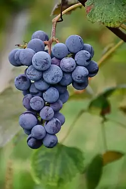The grapes/clusters are usually red, but also (less commonly) white. The varieties used are inter-specific hybrids, which were developed from crossings between the European species Vitis vinifera with the native North American Vitis labrusca and Vitis riparia. It is Vitis labrusca which lends the wine its characteristic "strawberry" flavouring.