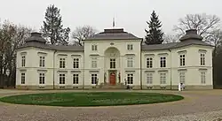 The forested area of Ujazdów closer to the river was designated by Stanisław II Augustus as a Baths Park (Polish: Łazienki), with a private palace obtained from nobleman Stanisław Herakliusz Lubomirski.[10] The chateau was reconstructed in a neoclassical style in the middle of a pond, earning it the names "Palace on the Isle" and "Palace on the Water". It is one of Warsaw's most recognizable landmarks.