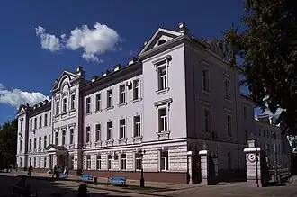 The Ukrainian Academy of Banking was founded on February 12, 1996 according to the decree of the Cabinet of Ministers of Ukraine.[1] With the support of the National Bank of Ukraine and its Board, the academy created a material and technical base of the European type for the training of students: three educational buildings with a total area of 35,000 sq.m. It includes two fully renovated historical buildings for the Law Faculty,[2] Faculty of Banking Technologies[3] and the main building (Faculty of Accounting and Finance).[4] The academy's telecommunication systems and network technologies include computer equipment, software and hardware, electronic turnstile gates, new telephone communication systems, an open Wi-Fi network and other projects.[5]