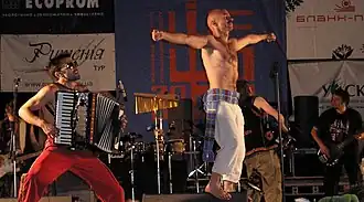In the late 1980s and early 1990s a new generation of Ukrainian rock artists emerged, represented among others by Opalnyi Prynz, perhaps the most influential rock band of that period, followed by its predecessor Loony Pelen.[11] An important event in the history of Ukrainian music during the last years of Soviet rule was the Vyvykh festival, whose first edition took place in Lviv in 1990. Among performers who played at the event were rock bands Mertvyi Piven, Plach Yeremiyi, Tabula Rasa (Ukrainian band), Banita Bayda, as well as future members of Skryabin. During that period music festivals became a vivid expression of protest against the Soviet regime and played an important role in the Ukrainian independence movement.[12]