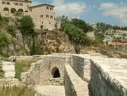 Old town has picturesque narrow and curved streets typical of the Middle Ages, densely packed two- and three-story stone houses decorated with elements of the Renaissance and Baroque, and finally a series of valuable edifices from the Ottoman time. The oldest remnants of the walls date back to the Illyrian period. In the 6th century, the town had two gates: the lower (eastern), which can be reached from the sea-side and the upper (western), which can be reached from land.[1][2]