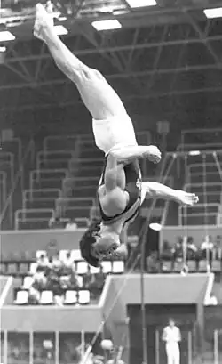 Ulf Hoffmann (born 8 September 1961) is a retired German gymnast. He missed the 1984 Summer Olympics due to their boycott by East Germany and took part in the Friendship Games instead, winning a silver medal in the team competition. He won another silver medal with the East German team at the 1988 Summer Olympics. His best individual result at those Games was 13th place on parallel bars.[1] He won three bronze medal at the world championships in 1985 and 1987 (team)[2] and European championships in 1985 (parallel bars).[3] After retiring he moved to Basel, Switzerland where he coaches female gymnasts.