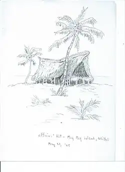 The Japanese had built an airstrip on Falalop. It was expanded and resurfaced, the runway running the full width of the island. The east end of the strip was extended approximately six meters (20 feet) past the natural shoreline.[26] During the operations, 4,500 sacks of mail, 262,000 pounds (119,000 kg) of air freight and 1,200 passengers would use this airstrip.[27] A number of small strips for light aircraft were built on several of the smaller islands. The Seabees completed a fleet recreation center at Mog Mog island that could accommodate 8,000 men and 1,000 officers daily. A 1,200-seat theater, including an 8-by-12-meter (25 by 40 ft) stage with a Quonset hut roof, was completed in 20 days.[28] At the same time, a 500-seat chapel was built. A number of the larger islands were used both as bases to support naval vessels and facilities within the lagoon.[29]