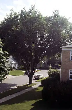 The American Elm cultivar Ulmus americana 'Vase' was selected and propagated in the early 20th century[1] by the Klehm Nurseries, Arlington Heights, Illinois, who advertised it at first as Ulmus americana 'Urnii', 'Klehms' American Vase-Shaped Elm', listing it, along with its stablemate Ulmus americana 'Moline', as a "novelty" in 1926,[2] and describing both in some detail.[3] Its original cultivar name, 'Urnii' [3][4] – doubtful Latin – was changed to 'Vase' by Klehms by the 1930s, the tree also featuring as 'Vase Elm' ("a budded form of Elm, with graceful vase shape") in the catalogues of the Plumfield Nurseries, Fremont, Nebraska, from 1926, along with Klehms' 'Moline'.[5][6][7][8] Vaughan's of Chicago marketed both from 1927.[9] The Naperville Nurseries of Naperville, Illinois, marketed it from 1929 as 'Klehmii', 'Vase Elm', also introducing Klehms' 'Moline' at the same time.[10]