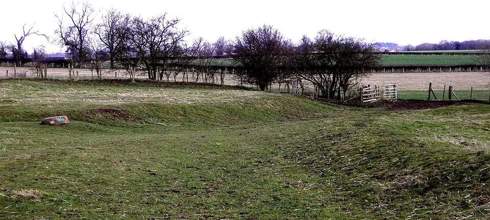 Ulnaby is an abandoned village and scheduled ancient monument in the grounds of Ulnaby Hall Farm, near High Coniscliffe, County Durham, England. The toft village was occupied from the late-13th to the 16th century and temporary buildings were erected in the 19th century. Ulnaby Hall farm appears to have been built in the late-16th century, supplanting a high status medieval manorial enclosure associated with the original village. It is thought that the village shrank because of the change from labour-intensive arable farming to pasture,[1] before being abandoned and the site was subsumed into the farm as pasture.[2]