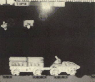 This air of mystery was increased when CRASH magazine published a reader's photograph of Lunar Jetman featuring Jetman's moon rover pulling a trailer.[38] The possible existence of a trailer (as depicted on the game's cover art and loading screen) had been speculated on since the game's release, and many fans had searched fruitlessly for it. The Stampers shrugged off questions about whether this screen shot was genuine, but stopped short of actually denying it.[23] There have even been suggestions that Ultimate themselves may have created the screen shot to generate more interest in the game.[1] It has since been proven that Lunar Jetman's code does not contain graphics for a trailer.[2]