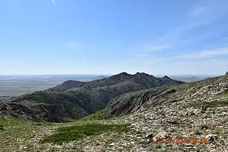 The Ulutau is one of the subranges of the Kazakh Upland system. The range stretches from north to south for about 200 kilometers (120 mi). Its highest point is 1,131 meters (3,711 ft) high Akmeshit. The mountains are rocky, deeply dissected by ravines and have an arid look.[1][2][3]
