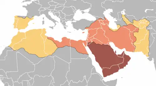 Muslim state at the death of Muhammad   Expansion under the Rashidun Caliphate   Expansion under the Umayyad Caliphate