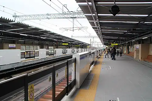 Umekōji-Kyōtonishi Station (梅小路京都西駅, Umekōji-Kyōtonishi-eki) is a railway station located in Kankijichō, Shimogyō-ku, Kyoto.[2] The station was opened on 16 March 2019, and operated by West Japan Railway Company (JR West), with station number JR-E02. The station is served by the Sagano Line (Sanin Main Line).