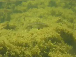 | Three Umpqua chub in the South Umpqua River (Photo taken during snorkel survey). | |