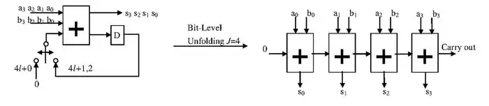 Unfolding has applications in designing high-speed and low-power ASIC architectures. One application is to unfold the program to reveal hidden concurrency so that the program can be scheduled to a smaller iteration period, thus increasing the throughput of the implementation. Another application is parallel processing in word level or bit level. Therefore these transformed circuit could increase the throughput and decrease the power consumption.