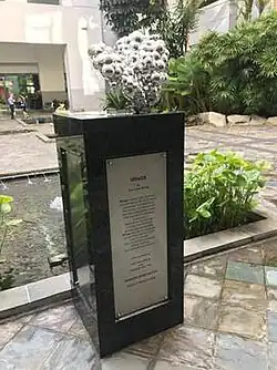 This sculpture was donated by Yeo Chee Keong and Anthony Teo to UniSIM. Mounted on a soft hue of Volga blue Ukrainian igneous granite pedestal, the work is meant to inspire UniSIM graduates to soar.