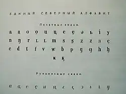 The Unified Northern Alphabet (UNA) (Russian: Единый северный алфавит, romanized: Edinyy severnyy alfavit) was a set of Latin alphabets created during the Latinisation in the Soviet Union for the "small" languages of northern Russia and used for about five years during the 1930s.