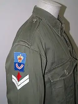 The colours of each nation's Battle dress differed. Canadian Battle dress had since World War II been more green than the British,[19] and New Zealand Battle dress was always a darker brown. The Battle dress worn by the South African Air Force serving in Korea was more of a tan colour.[20]