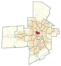 The riding contains most of Downtown Winnipeg and parts of the neighbourhoods of West Broadway and Spence.