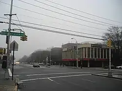 Prior to the construction of Grand Central Parkway and Interboro Parkway (now the Jackie Robinson Parkway) in the 1930s,[12] Union Turnpike was heavily used, and developed businesses throughout its length. In 1929, there was a proposal to make improvements to four existing roads in order to make them major thoroughfares between Queens and Nassau, namely Astoria Boulevard, Northern Boulevard, Nassau Boulevard, and Union Turnpike.[13] Civic associations in Jamaica opposed the Union Turnpike proposal, and they convinced Queens Borough President George Harvey.[14] Nevertheless, the section of Union Turnpike from Kew Gardens to the Nassau County line was converted from a narrow unpaved road to a paved multi-lane highway in the late 1930s, in advance of the 1939 New York World's Fair.[15] Around the same time, the turnpike was depressed below Queens Boulevard in conjunction with the construction of the Queens Boulevard Subway, and extended eastward from Fresh Meadows towards Marcus Avenue in Nassau County.[4][16]