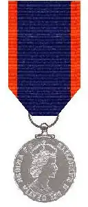 - The decoration is struck in silver and is a disk, 38 millimetres in diameter with a raised rim and a large ring suspender. The obverse depicts the crowned effigy of Queen Elizabeth II, facing right and surrounded by the inscription "ELIZABETH II DEI GRATIA REGINA F. D." around the perimeter.[2]