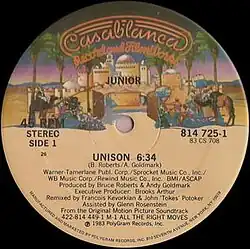 "Unison" is a song written by Bruce Roberts and Andy Goldmark, and first recorded by the English singer Junior in 1983 for the Tom Cruise-starred movie All the Right Moves. A minor hit, the song would attract a good deal of attention in 1990, when three female singers each covered the song and placed it on their respective albums of that year.