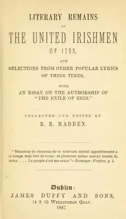 - ^ Richard Madden (1896), The United Irishmen, Lives and Times. London, The Catholic Publishing and Bookselling Company. p. 29.