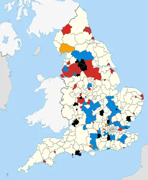 All 36 metropolitan boroughs, 18 out of 55 unitary authorities, 74 out of 201 district councils, all 32 Scottish council areas, 21 out of 22 Welsh principal councils, and 3 directly elected mayors | ||||||||||||||||||||||||||||||||||||||||||||||||||||||||||||||||||||||||||||
