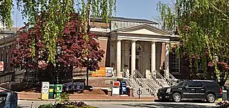 The US Post Office—Winchester Main is a historic post office at 48 Waterfield Road in Winchester, Massachusetts. The single-story Classical Revival brick building was built in 1927 and 1928 by John P. Curley for the United States Postal Service. The building features neo-Classical temple fronts on its three principal facades, with a more elaborate projecting instance on the long south-facing facade, where the main entrance is located. The cornice has a simple dentil moulding in limestone; the roof is flat, but there is a raised clerestory section in the center.[2]