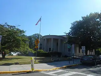 US Post Office-Great Neck is a historic post office building located at Great Neck Plaza in the town of North Hempstead, Nassau County, New York, United States. It was built in 1939 and designed by consulting architect William Dewey Foster (1890-1958) for the Office of the Supervising Architect. It is a one-story, pentagonal shaped skeletal frame building clad with plucked textured buff limestone in the Classical Revival style. It features a semicircular entrance portico supported by four square columns. Above the entrance is a relief sculpture of an eagle with 13 stars sculpted in 1940 by Gaetano Cecere.[2]