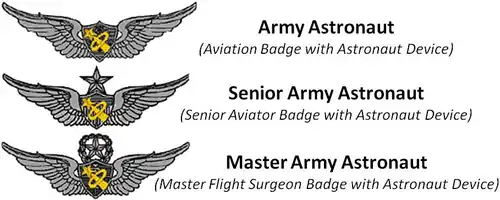 - ^ "Army Astronaut Device and Badges", The Institute of Heraldry, Office of the Administrative Assistant to the Secretary of the Army. Retrieved March 18, 2009.