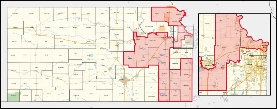 | 116th (2019–2021) | Steve Watkins (R) | Sharice Davids (D) | ||