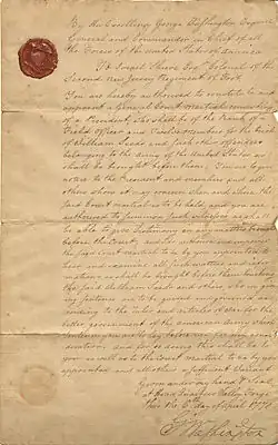 When war broke out between the American Colonists and the British in 1775, the British were operating under the 1765 edition of the Articles of War.[7] This version would serve as the template for military justice in the Continental Army.[8] When the United States declared independence and fought the Revolutionary War, "it had a ready-made military justice system." Despite the Colonists' dissatisfaction with the British, they still recognized the intrinsic value of the British military justice system in providing good order and discipline to its own armed forces.[9]