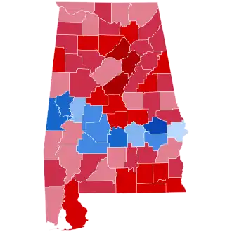 As of the 2024 presidential election, Bush is the last Republican to carry Jefferson County (home of Birmingham, the state's largest city) in a presidential election. Majority-black Marengo County wouldn't vote Republican again until 2024.