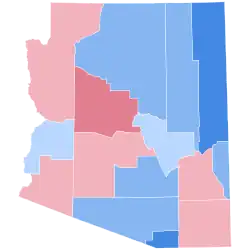 Clinton had come fairly close to winning Arizona four years earlier. In his re-election bid, he was able to gain a larger share of the vote in Democratic-trending Pima County as well as most of northern Arizona. He also increased his support in Maricopa County, although it was again carried by the Republican candidate. His statewide margin of victory was slightly over 31,000 votes out of about 1.4 million cast. Billionaire businessman Ross Perot (Reform-TX) finished in third, with 8.0% of the popular vote. Exit polls suggest he did not change the outcome.[3] As of 2024, this is the last election in which the following counties have voted for a Democratic presidential candidate: Gila, Greenlee, Navajo, Pinal and La Paz.[4]