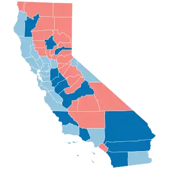 | Yuba | 8,866 | 41.43% | 12,007 | 56.10% | 528 | 2.47% | -3,141 | -14.67% | 21,401 |