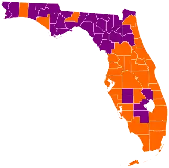 Florida is spread over two time zones, so voting wasn't completed until 7 pm CST/8pm EST.[16]