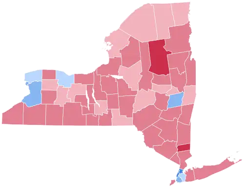 1980 remains the last election in which a Republican presidential nominee has won traditionally rock-ribbed GOP Tompkins County in upstate New York, home to the college town of Ithaca, where Cornell University and Ithaca College are located.[4] From the Republican Party's founding in 1854 all the way up to 1976, Tompkins County had been a Republican stronghold in presidential elections and had only gone Democratic in the landslides of 1912 and 1964,[5] with Franklin D. Roosevelt never topping 40% in the county in a presidential election. With the Republican Party nationally being increasingly taken over by its conservative wing, the GOP's fortunes quickly began to fade in the county in the 1980s. Reagan narrowly won Tompkins County in 1980 with a plurality of 42% to Carter's 40%, while Anderson took nearly 14%, making it Anderson's strongest county in the state. Four years later in 1984, Tompkins County would vote against Reagan, and by 2004 had become the most Democratic county in all of upstate New York in giving 64.19% of the vote to John Kerry. Tompkins County later gave Barack Obama 70.09% of the vote in 2008, and Joe Biden 73.51% of the vote in 2020.