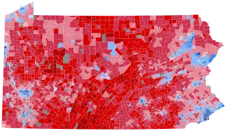 Obama received 51.97% of the vote, beating Romney's 46.59%.[5] Also on the ballot were physician Jill Stein of the Green Party and former New Mexico Governor Gary Johnson of the Libertarian Party, who received 0.37% and 0.87%, respectively.[5] Other candidates could run as write-in candidates, which received a total 0.2% of the vote. The state had been considered likely, but not certain, to go to Obama.[6] While the state had voted for a Democrat since 1992, it remained competitive, especially after Bush's loss of only 2.5% in 2004. Its competitiveness was attributable to the stark contrast between the state's diverse, urban voters in areas such as Philadelphia and Pittsburgh; and rural, blue-collar voters in the rest of the state. However, massive margins in the urban regions of the state and victories in the Philadelphia suburbs, Lehigh Valley, Scranton, and Erie delivered a considerable victory for the president. Regardless, Romney improved on John McCain's 10.32% loss in the state in 2008.[7] Just like in 2008, Pennsylvania was the most Republican of the three Rust Belt swing states (including Wisconsin and Michigan) in 2012.
