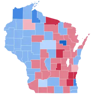 Wisconsin weighed in for this election as 12 points more Democratic than the national average. As of 2024, this is the last election in which Green County voted for a Republican presidential candidate,[4] in which the state would vote to the left of neighboring Illinois, and in which the Democratic candidate won Wisconsin while simultaneously losing Illinois. It was also the last election until 2016 in which both Wisconsin and Illinois voted differently. Additionally, it was the last election until 2024 in which Wisconsin voted to the left of both neighboring Michigan and fellow Rust Belt state Pennsylvania, as well as the most recent election where Wisconsin, Michigan, and Pennsylvania all did not vote for the same candidate.[5]