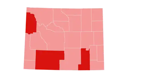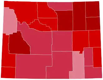 Wyoming was won by incumbent Texas Governor George W. Bush by a massive 40.06% margin of victory, and his 67.76% of the popular vote made the state his strongest victory in the 2000 election.[1] He was accompanied on the Republican ticket by vice presidential nominee Dick Cheney, formerly a member of the U.S. House of Representatives from Wyoming's at-large district. As of the 2024 presidential election, this is the last time a Republican won Teton County, and thus is also the last time a nominee of any party carried every county in the state, even though subsequent Republican nominees such as Donald Trump have exceeded Bush's share of the overall vote in Wyoming.