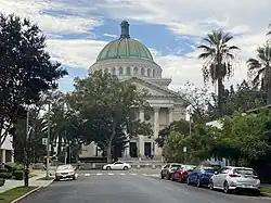 ![]() ![]() ![]() ![]() ![]() Top: St. Vincent de Paul Church (left), Automobile Club of Southern California (middle), St. John's Cathedral (right); bottom: Bovard Auditorium in the USC campus (left) and Second Church of Christ, Scientist | |