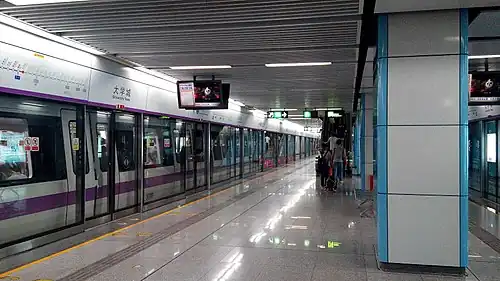 University Town station (Chinese: 大学城站) is a Metro station on Line 5 of the Shenzhen Metro. It opened on 22 June 2011. The station is an underground station and serves the University Town of Shenzhen.