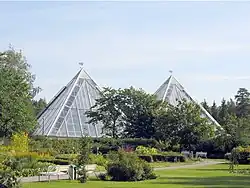The landmark of the Oulu Botanical Garden are the pyramid-shaped greenhouses Romeo and Julia where about 1,200 exotic plant species are presented.