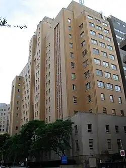 UPMC has its roots in the 1893 establishment of Presbyterian Hospital,[11][12] which serves as the medical center's flagship facility, and the 1886 founding of the Western Pennsylvania Medical College. Soon after its founding, the medical college became affiliated with the Western University of Pennsylvania in 1892, and in 1908, was fully integrated into the university which that same year was renamed to the University of Pittsburgh.[13][14] Already having worked out informal agreements for teaching and staffing privileges with a number of local hospitals,[15] Pitt and its School of Medicine desired to establish an academic medical center, and by the mid-1920s had formed a plan with a coalition of city hospitals to have them relocate to the Oakland neighborhood of the city that the university had itself moved to in 1909.[16] The university provided Presbyterian Hospital, then located on the North Side, with a tract of land on its campus for construction of a new hospital which broke ground in 1930 and was subsequently opened in 1938.[12] By the end of the 1930s, the University of Pittsburgh had helped to form the "University Medical Center" which included Falk Clinic, Children's, Eye and Ear, Libby Steele Magee, Presbyterian General, and Women's Hospital, as well as the planned Municipal Hospital.[17][18][19][20]