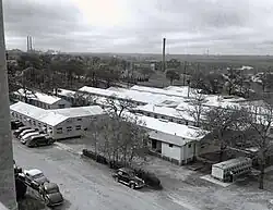 Southwestern Medical College as it appeared at its founding in the 1940s. Animal facilities are seen in the lower right.