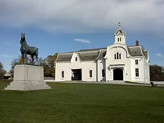 The Morgan horse breed traces its origins to the activities of Justin Morgan, who purchased Figure in the 1790s. The breed saw widespread expansion and use throughout the United States in the 19th century, spawning several other important breeds. In 1905, the United States Department of Agriculture established a breeding program on the campus of the University of Vermont in Burlington. Two years later, it moved to this property, donated by Joseph Battell, founder of the American Morgan Register. The facilities were turned over to the University of Vermont in 1951.[2] The site is a tourist attraction for aficionados of Morgan horses, and continues to be a leader in the development of the breed.