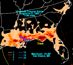 9. ^ a b David M. Roth (2012). Tropical Cyclone Rainfall for the Gulf Coast (Report). College Park, Maryland: Weather Prediction Center. Archived from the original on July 21, 2011. Retrieved March 24, 2013.