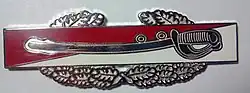 In 2004, Congressman Mark Green, (Republican, Wisconsin) introduced H.R. 3950 to provide for the establishment of a combat artillery badge to recognize combat service by artillerymen.[2] While none of the other unofficial badges were covered in H.R. 3950, the bill ultimately did not make it out of committee anyway. The final demise of these unofficial badges began when the National Defense Authorization Act (NDAA) of 2005 required the Secretary of the Army to establish a Combat Recognition Ribbon (CRR) to recognize the combat service of all branches. The CRR would therefore provide an official award that fulfilled the role of the unofficial branch-specific badges. A combat recognition ribbon was never developed by the army because it was scrapped in favor of a Close Combat Badge (CCB). The CCB would recognize specific armor, cavalry, field artillery and combat engineer soldiers who served in units purposefully reorganized to routinely conduct infantry-unique close combat missions and were personally present and under fire while conducting those types of missions. This badge would not honor the combat service of soldiers of these branches, but instead signal that their unit had been purposely deployed to fulfill the role of an infantry unit in a combatzone. Finally, these restrictive criteria were scrapped and the army created the Combat Action Badge for soldiers of any branch in any unit who enter into combat with the enemy. This new badge makes obsolete the unofficial branch-specific combat badges.
