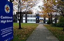 The area was the site of Bury's first comprehensive school, built in 1971. Unsworth Comprehensive was later renamed Castlebrook High School, and was recently changed again to Unsworth Academy. The school has been rated as "good" by the education standards office, OFSTED[57] following their inspection in 2010, an improvement from the school's previous "satisfactory" rating of 2006.[58] The school has recently completed a major rebuilding and rebranding, but still remains on the same site.