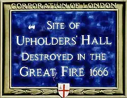 The Worshipful Company of Upholders is one of the Livery Companies of the City of London. "Upholder" is an archaic word for "upholsterer". In past times, upholders did not just manufacture and sell upholstered goods but were cabinet makers, undertakers, soft furnishers, auctioneers, and valuers. The organisation was formed on 1 March 1360 and officially incorporated by a Royal Charter granted by Charles I in 1626.[1] The Company originally had the right to set standards for upholstery within London and to search, seize and destroy defective upholstery. However, over the years, the Company's power has eroded, as has the profession of upholsterers, because of the advancement of technology.[2]