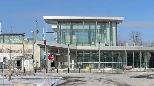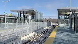 Uplands station is a station on Line 4 of the O-Train system in Ottawa, Ontario. It was constructed as part of the Stage 2 O-Train expansion and opened on January 6, 2025. The station has two side platforms and has the only passing loop on the line.[1]
