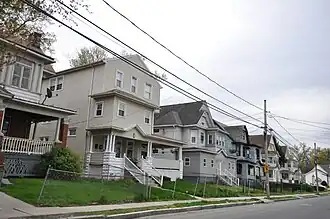Most of the houses 663 buildings in the district are houses set on relatively narrow lots, and share a significant number of common architectural elements. They are typically of wood frame constructions and 2 to 2-1/2 stories in height. Their exteriors are clad in a combination of wooden clapboards and shingles, the latter sometimes decoratively cut in the Queen Anne style. Porches are another common feature, often with Tuscan columns, as are leaded stained-glass windows and Palladian windows. Commercial development is generally limited to Albany Avenue itself, in some cases as alterations to period houses, and period buildings housing more than two units (triple decker tenements and apartment blocks) are mainly limited to Lenox Street.[2]